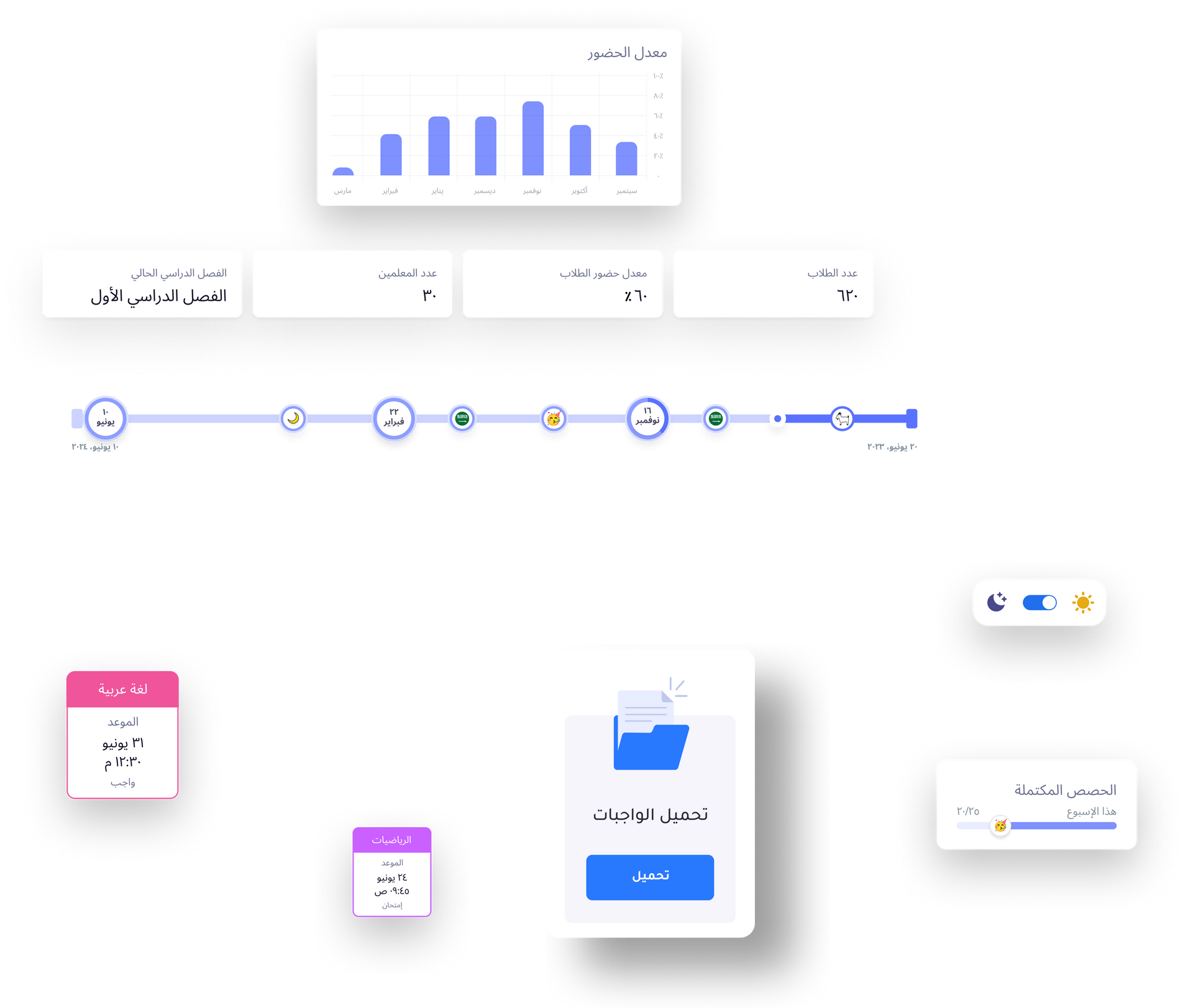 نافذتك المباشرة على كل ما يهمك. عرض فوري لآخر التحديثات المدرسية: الدرجات، الحضور، والتقييمات القادمة، كلها في لوحة واحدة متكاملة.