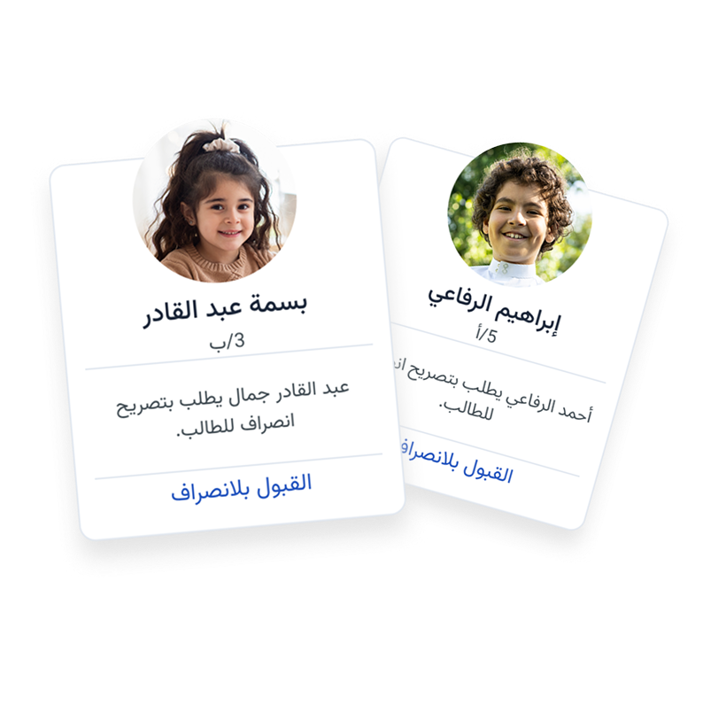 نمنح أولياء الأمور القدرة على الاطلاع على حضور أبنائهم، ومراجعة درجاتهم، والتواصل المباشر مع المعلمين بكل سهولة.